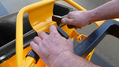 Sometimes hand controls are preferred to the standard three pedals. We use a simple Tiller Lever system located in the operator’s platform. Two handle bars and two tiller levers (one for each drive wheel) makes this very safe and smooth to operate.